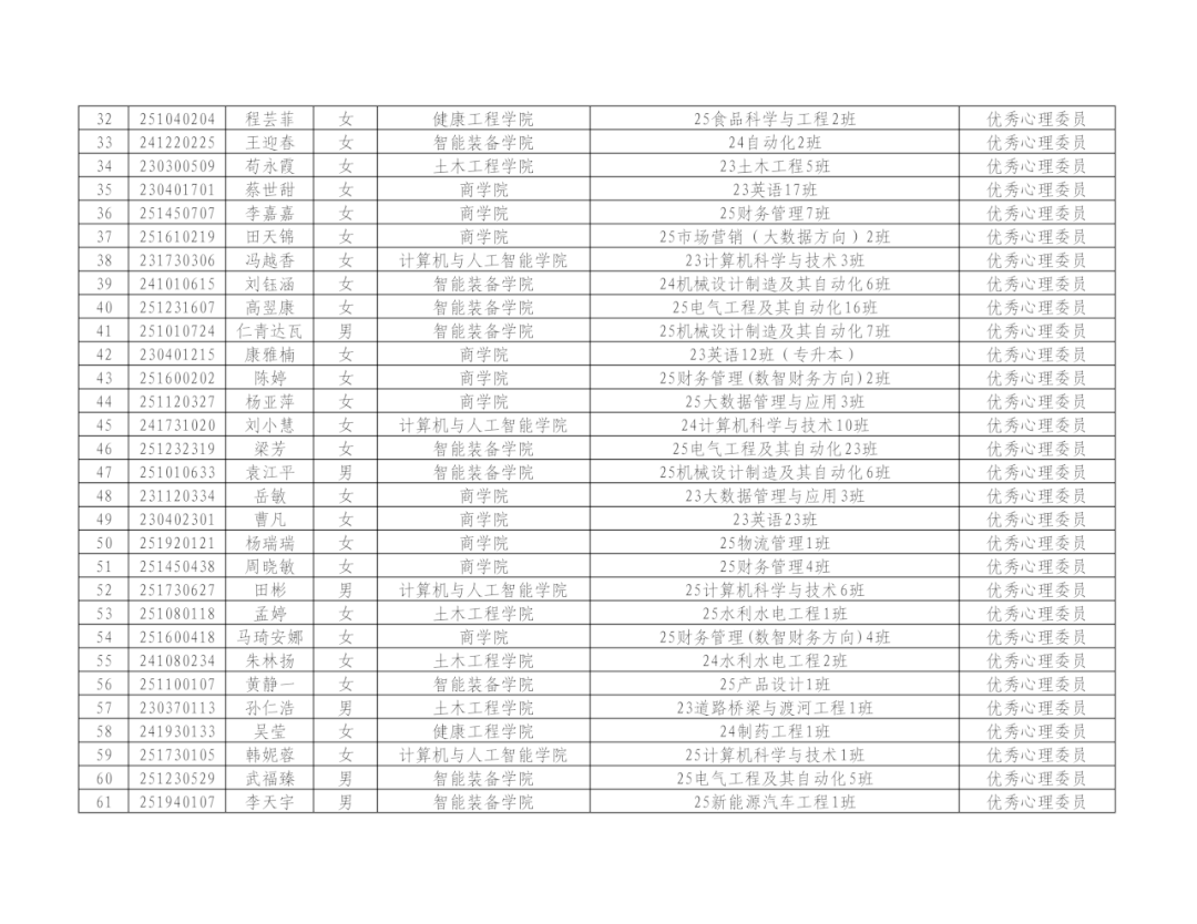 心理委员是班级的心理健康守护者,是朋辈力量的重要组成部分,其职责包括但不限于普及心理健康知识、关注同学心理变化、推动心理健康工作、收集反馈心理情况。作为“学校—学院—班级—宿舍/个人”四级心理健康预警工作网络的一环,心理委员能够为有需要的同学提供初步的心理支持。