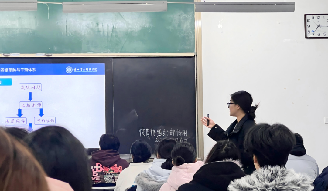 12月16日,心理健康指导中心在2号教学楼组织开展心理委员工作技能主题培训,主题涉及心理委员角色定位、谈心谈话技巧和心理健康基本知识,培训由张静和郭桓汐老师主持。