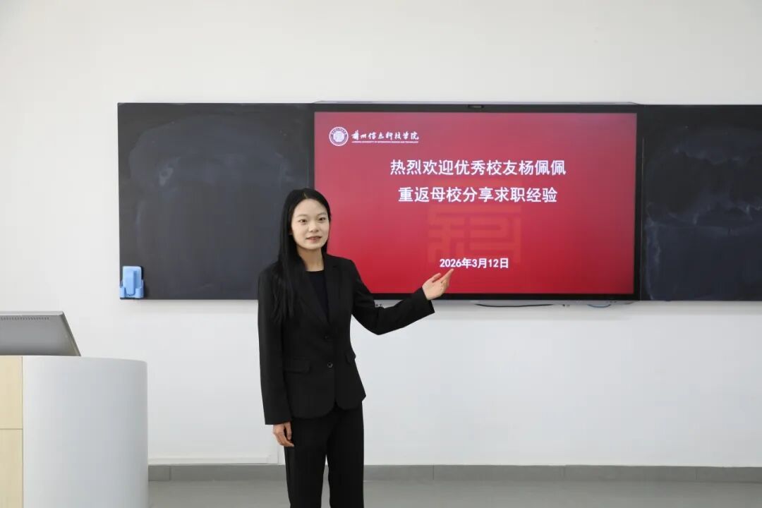 为充分发挥优秀校友的示范引领作用,搭建在校生与优秀毕业生交流互动的平台,帮助同学们明晰职业发展方向、提升求职就业能力,3月12日,兰州信息科技学院计算机与人工智能学院举办优秀校友求职经验分享会。本次分享会特邀请2025届优秀毕业生杨佩佩校友返校,为学弟学妹带来名企求职之路的独家经验与实用技巧分享,并与学院老师展开暖心座谈。