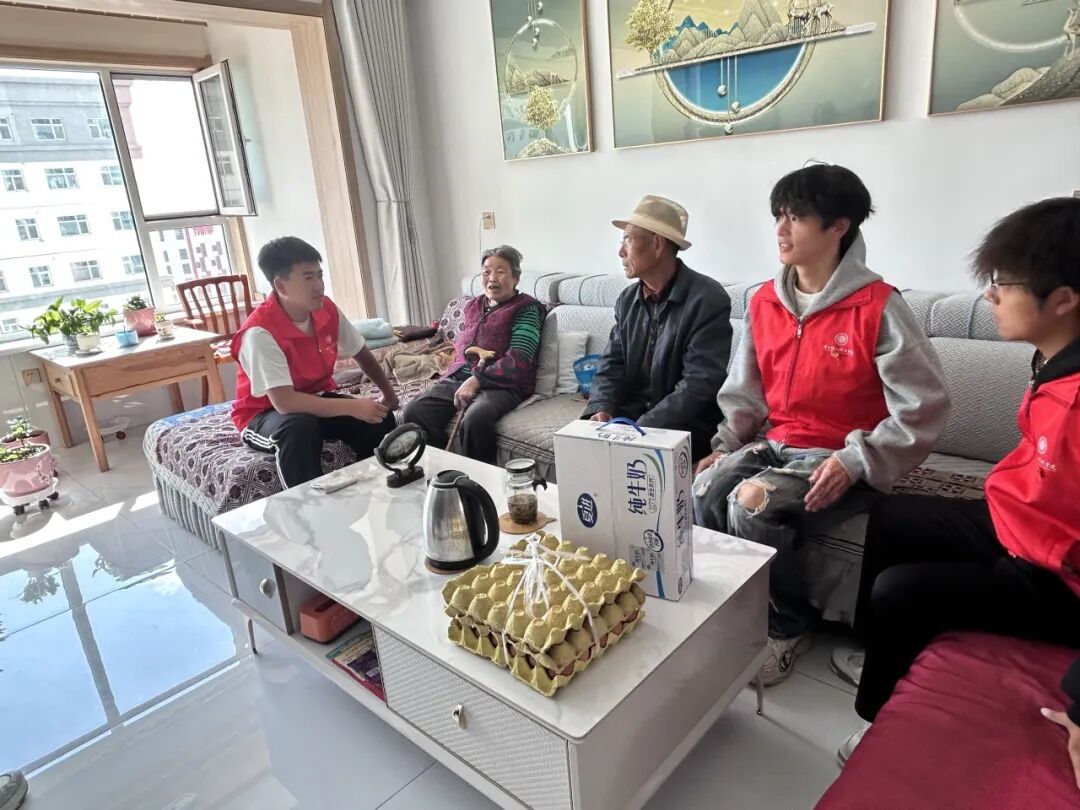 在社区工作人员的协助下,志愿者们带着牛奶、鸡蛋等慰问品,走进空巢老人家中。他们陪老人聊天解闷,帮老人打扫房间、检查电器安全。82岁的独居老人陈爷爷拉着志愿者的手说:“你们一来,家里就热闹了,比过年还开心!”志愿者们纷纷表示:“老人需要的不仅是物质帮助,更需要陪伴和关心,以后我们常来!”