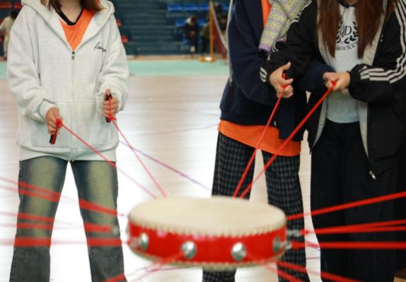 最考验团队协作的当属“鼓动人心”活动。当那面印着彩色纹路的鼓被小组成员们攥紧绳头稳稳拉起,大家的目光都聚焦在鼓面上的小球上。起初,小球在鼓面上颠没几下就掉落在地,队伍里顿时响起一阵惋惜声。但没有人气馁,大家立刻围在一起讨论策略,“力气大的同学调整位置,保持平衡!”“节奏慢一点,别慌!”在一次次的尝试与调整中,大家逐渐找到了默契。有人负责喊节奏,有人负责捡球,鼓面与小球碰撞的声音越来越有规律,围观的同学也忍不住为他们加油呐喊。当小球成功颠到八十四下时,整个队伍欢呼雀跃,大家互相击掌拥抱,那份通过共同努力获得的成就感与团队凝聚力,在这一刻深深烙印在每个人心中。