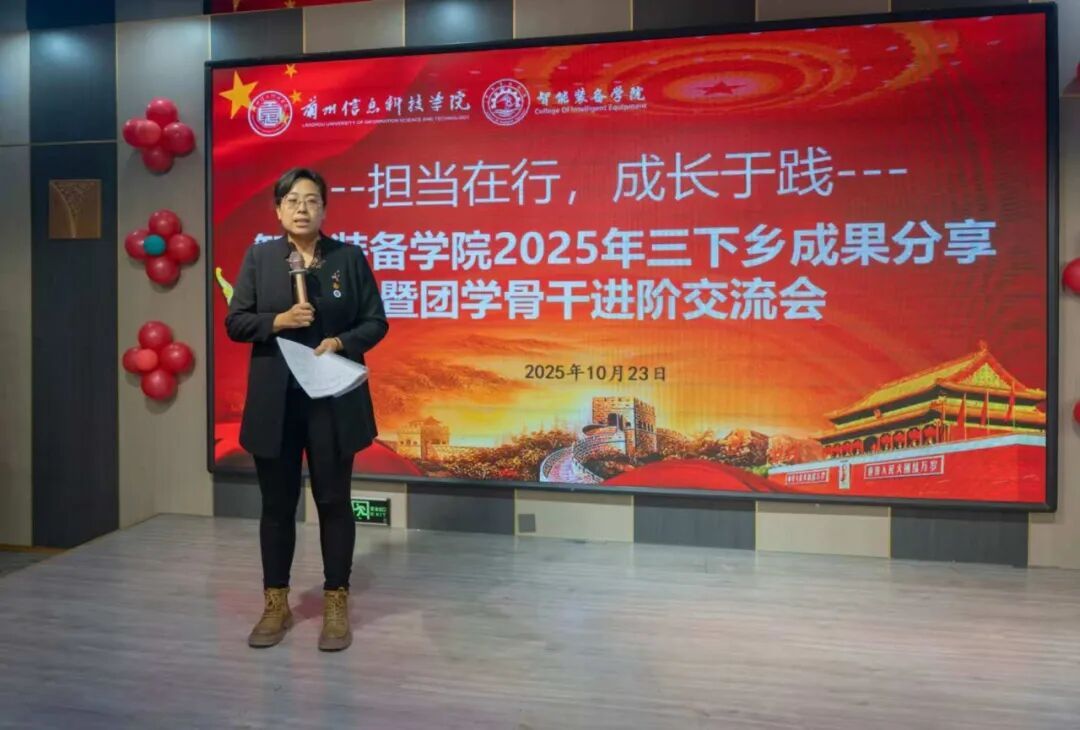颁奖结束后,暑期“三下乡”社会实践带队老师智能装备学院发展中心副主任兼团总支书记赵星娜上台发言。她首先对实践活动的圆满完成表示祝贺,充分肯定了队员在实践中展现出的担当精神与成长变化;随后结合自身经验,为队员未来参与社会实践提出针对性建议,鼓励大家将理论知识与实践紧密结合,在服务社会中实现人生价值。