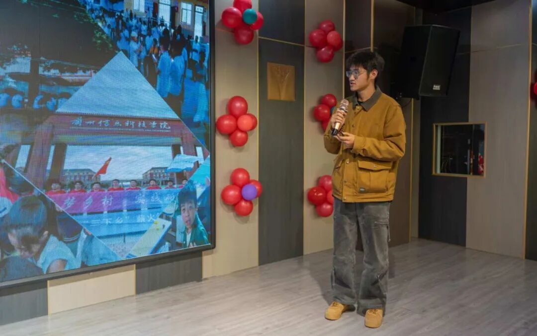 在“社会实践故事”分享环节,队员代表轮流上台,讲述了支教过程中的温情互动、走访老党员时的深刻感悟等经历,真挚的话语与动人的细节引发全场共鸣,让大家更直观地感受到实践背后的温度。