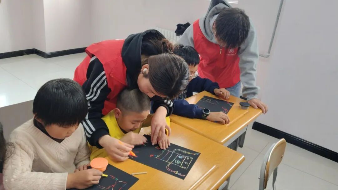活动尾声,志愿者为积极互动、完成作品的孩子们颁发小奖品,勉励他们以老一辈科学家为榜样,好好学习、砥砺成长,将来为国家发展贡献青春力量。孩子们手捧作品与奖品,脸上洋溢着灿烂笑容,眼中闪烁着追梦的光芒。