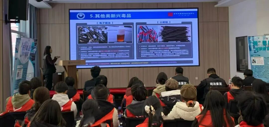 活动特邀法医毒物鉴定专家张海丽老师、文书鉴定专家王小飞老师、鉴定中心区域负责人杨学斌老师分别围绕禁毒科普、司法鉴定和电信防诈知识为同学们带来精准且实用的分享。