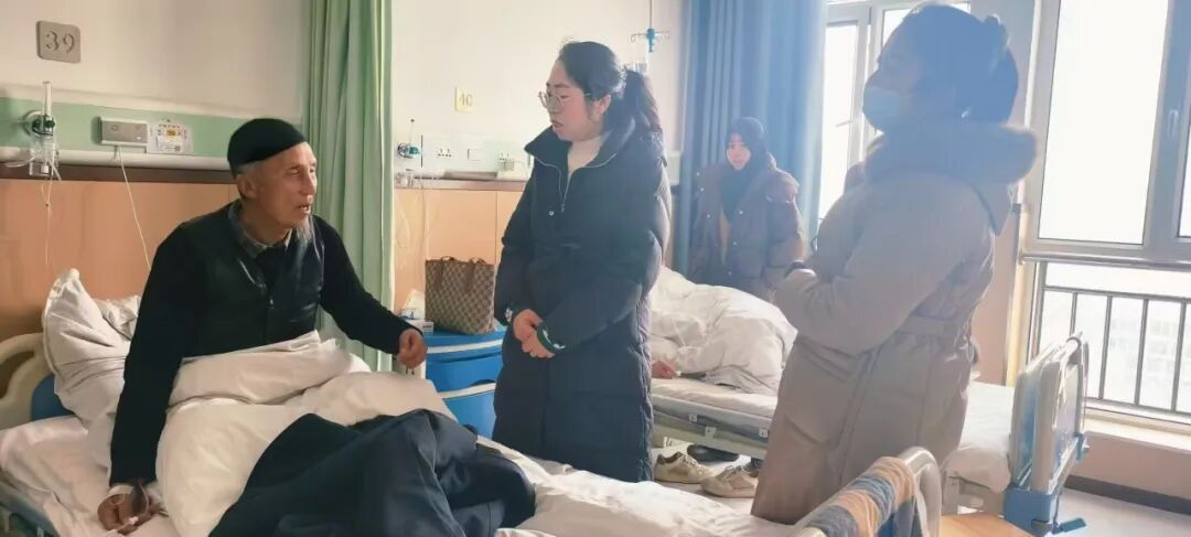 家访首站,老师们来到临夏市广河县人民医院,看望一名因家庭变故萌生退学念头的学生家长。辅导员们悉心询问学生家长的康复状况、医疗支出及家庭经济来源等现实困难,全面介绍国家与学校“奖、助、勤、补、贷”多位一体的资助体系,并结合实际推荐校内勤工助学岗位,切实减轻家庭负担。交流中,老师们给予学生真诚的情感支持与心理疏导,并表示:“眼前的困难只是暂时的,学院始终是你们的坚强后盾,我们将一起渡过难关。”辅导员朴实而坚定的话语,让学生与家长深受触动。家长再三表示感谢,并承诺将坚定地支持孩子完成学业。