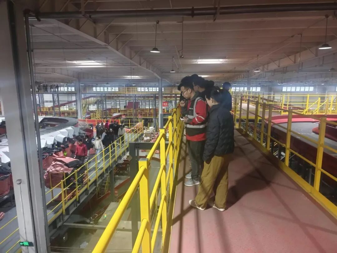 下午14:00时,同学们怀着对现代物流企业的好奇与期待,抵达京东智能产业园。在园区工作人员的引导下,大家先后参观了矩阵化区域、自动化分拣流程等。高速运转的自动化分拣线、精准高效的物件识别,让同学们直观感受到科技赋能下物流行业的巨大变革。